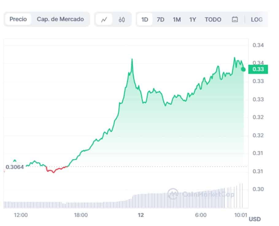 1INCH pasó de USD 0,308 a USD 0,336 en 24 horas.
