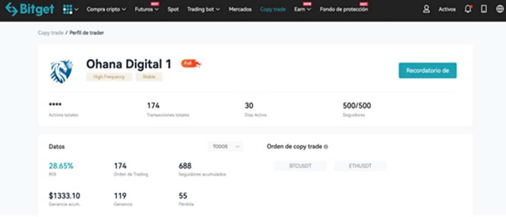 Descargo de responsabilidad: Bitget no recomienda a ninguno de los traders profesionales. El perfil mencionado es sólo un ejemplo entre los más de 1.000 perfiles disponibles. Utilizando el copy trade estás operando con futuros de criptomonedas, la cual conlleva riesgos para tu capital.