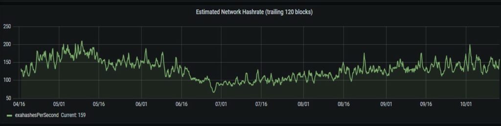 Aunque su recuperación no ha sido tan abrupta como el descenso que le echó por tierra, el hash rate de Bitcoin logró sobrepasar los 200 EH/s el pasado 2 de octubre, según datos del sitio web statoshi.info. Si bien, la red no se mantuvo por encima de estos valores, se trata de una cifra que es tres veces mayor al mínimo de junio y que, además, no se veía desde el 9 de mayo de este año.