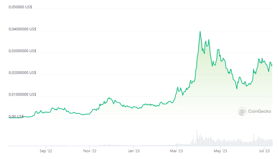KAS cotiza a USD 0,024 al momento de redacción de este artículo. El 2 de abril de 2023, alcanzó su precio máximo histórico de USD 0,042. En los últimos seis meses, su valor subió más de un 400%.