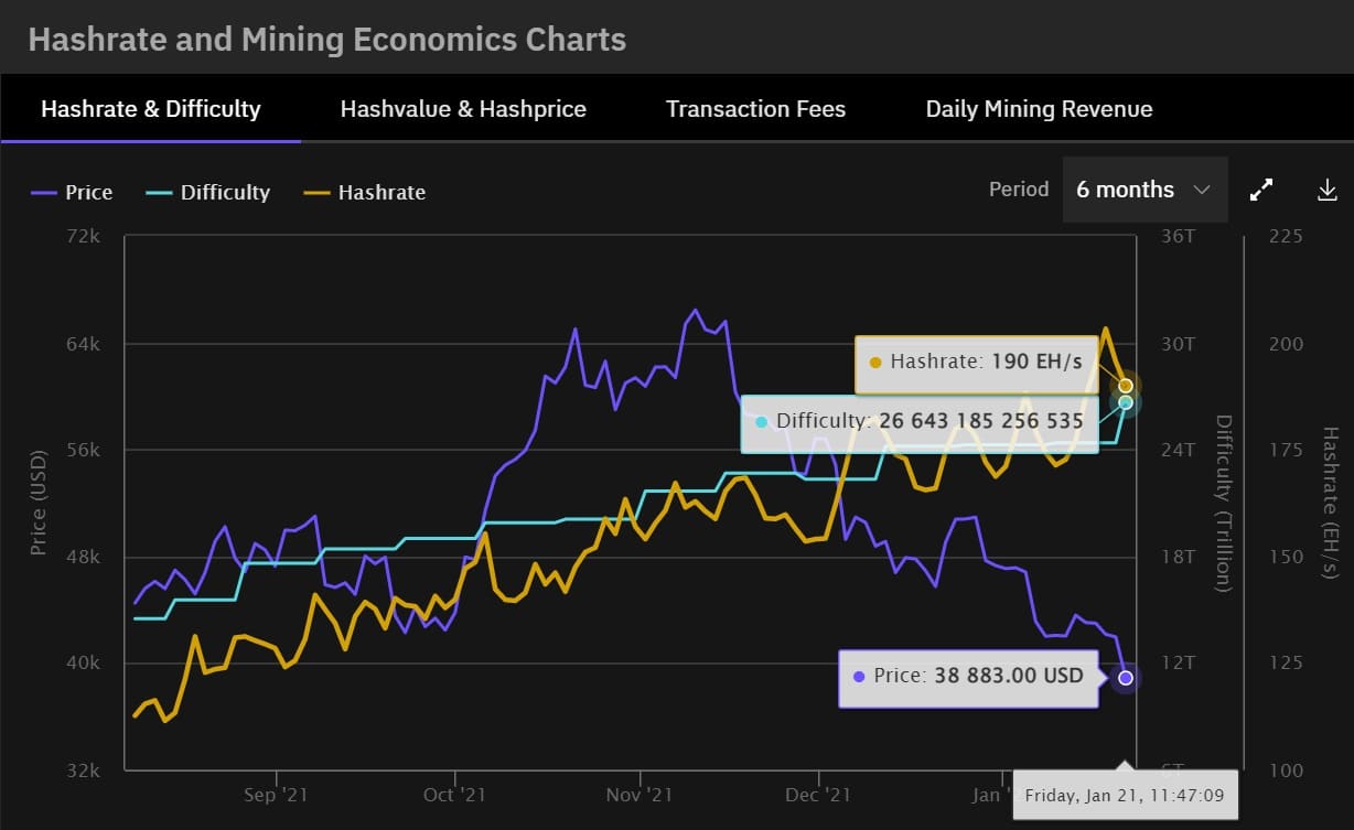 No obstante, en la actualidad el contexto es diferente, y esto tiene que ver principalmente con la caída del precio de la criptomoneda que se ha producido en el último mes. Esta disminución se ha visto todavía más pronunciada este 21 de enero, cuando el precio de la criptomoneda llegó a caer incluso por debajo de los USD 39.000.
