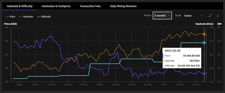 - Máximo alcanzado de hashrate: 269 EH/s (entre el 12 y el 16 de octubre)