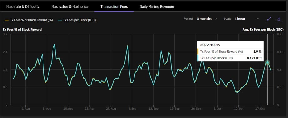 De acuerdo con los indicadores de las recompensas de la minería de Bitcoin, las ganancias por comisión de los mineros se encuentran en valores relativamente bajos. Sobre todo, si se compara con las cifras alcanzadas durante el último periodo alcista a finales del año pasado.