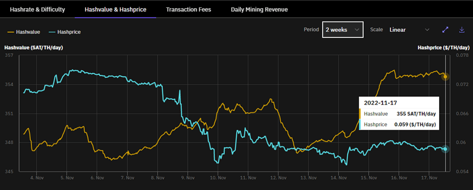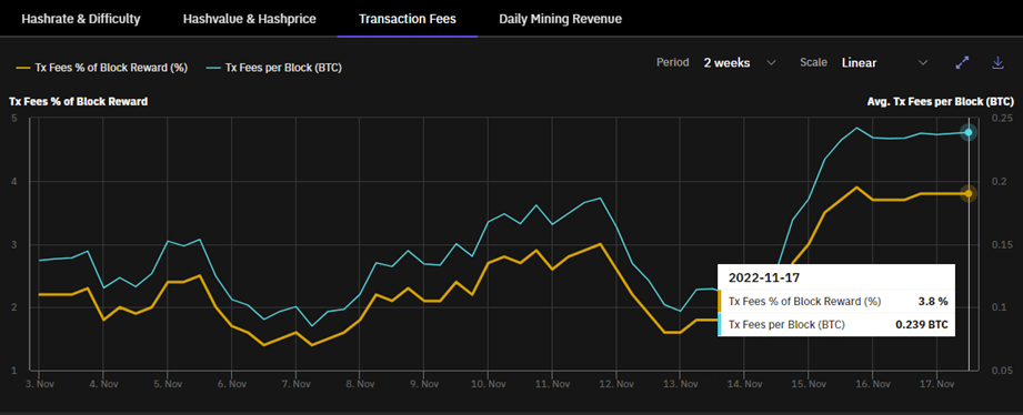 - Total de recompensas para los mineros de Bitcoin: 933,60 BTC o USD 15,4 millones (promedio de 144 bloques entre el 16 y 17 de noviembre)