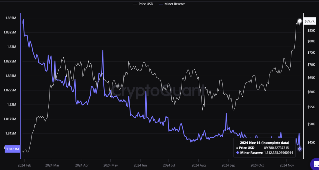 Las reservas de minería indican los BTC que los mineros aún no han vendido