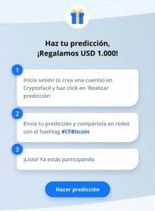 Los pasos para participar en el concurso son simples y solo requiere estar registrado en el sitio, establecer la predicción y luego compartir en Twitter o Facebook una página con el precio del bitcoin estimado.