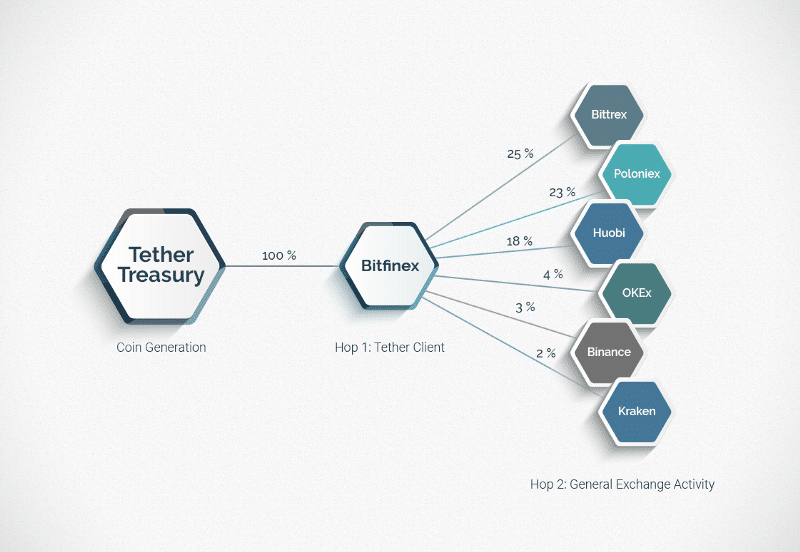 Los impactos de la emisión de tether en los precios de bitcoin ha sido un tema árido en el ecosistema, sobre todo por la falta de claridad que presentan los estados de USDT y lo estrechamente relacionada que está con la casa de cambio Bitfinex. De hecho, Bitfinex y Tether Ltd. tienen los mismos propietarios, la misma relación bancaria y el total del tránsito de USDT es emitido a través de dicha casa de cambio. Esto provocó que la Fiscalía de Nueva York demandara a Bitfinex y a Tether por presuntamente enmascarar pérdidas por USD 850 millones.