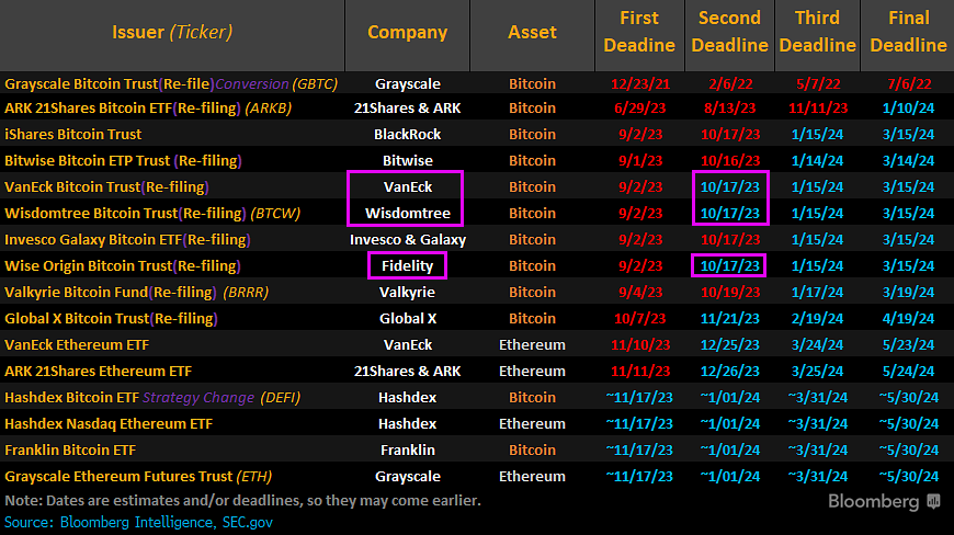 Con el retraso definido, sus próximas fechas límites para que la SEC defina aprobarlas, desaprobarlas o retrasar su revisión son en enero.