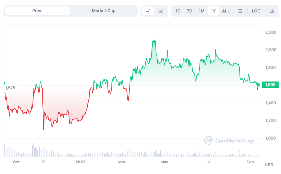 Se puede decir que, en líneas generales, ETH siguió la tendencia de las demás criptomonedas del mercado. Todas ellas suelen ir detrás del camino que marca bitcoin (BTC), que todavía en septiembre de 2023 parece no desligarse de la carga del mercado de osos (o bearish) que dominó gran parte del año.