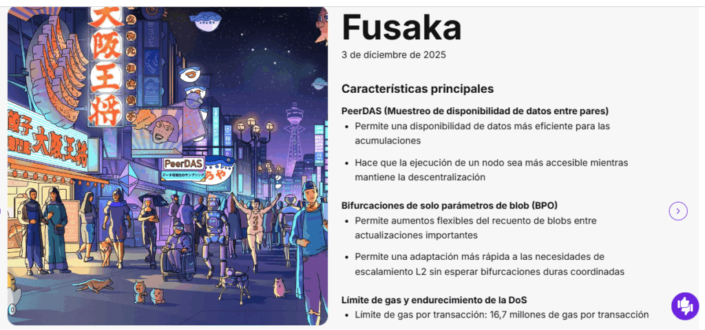En conjunto, Fusaka introduce un paquete de mejoras que alivian la carga sobre los nodos, amplían la capacidad de datos y fortalecen la eficiencia del cómputo en Ethereum. Con estos ajustes, la red queda mejor preparada para sostener el crecimiento de las L2 y operar con mayor estabilidad y previsibilidad.