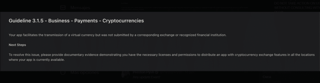 Un destino similar acaeció sobre Zeus Wallet, un monedero de código abierto para teléfonos móviles, enfocado en pagos a través de la red Lightning de Bitcoin. De acuerdo con una publicación de Evan Kaloudis, desarrollador principal del monedero, “Zeus v0.7.6 ha sido rechazada por Apple”.